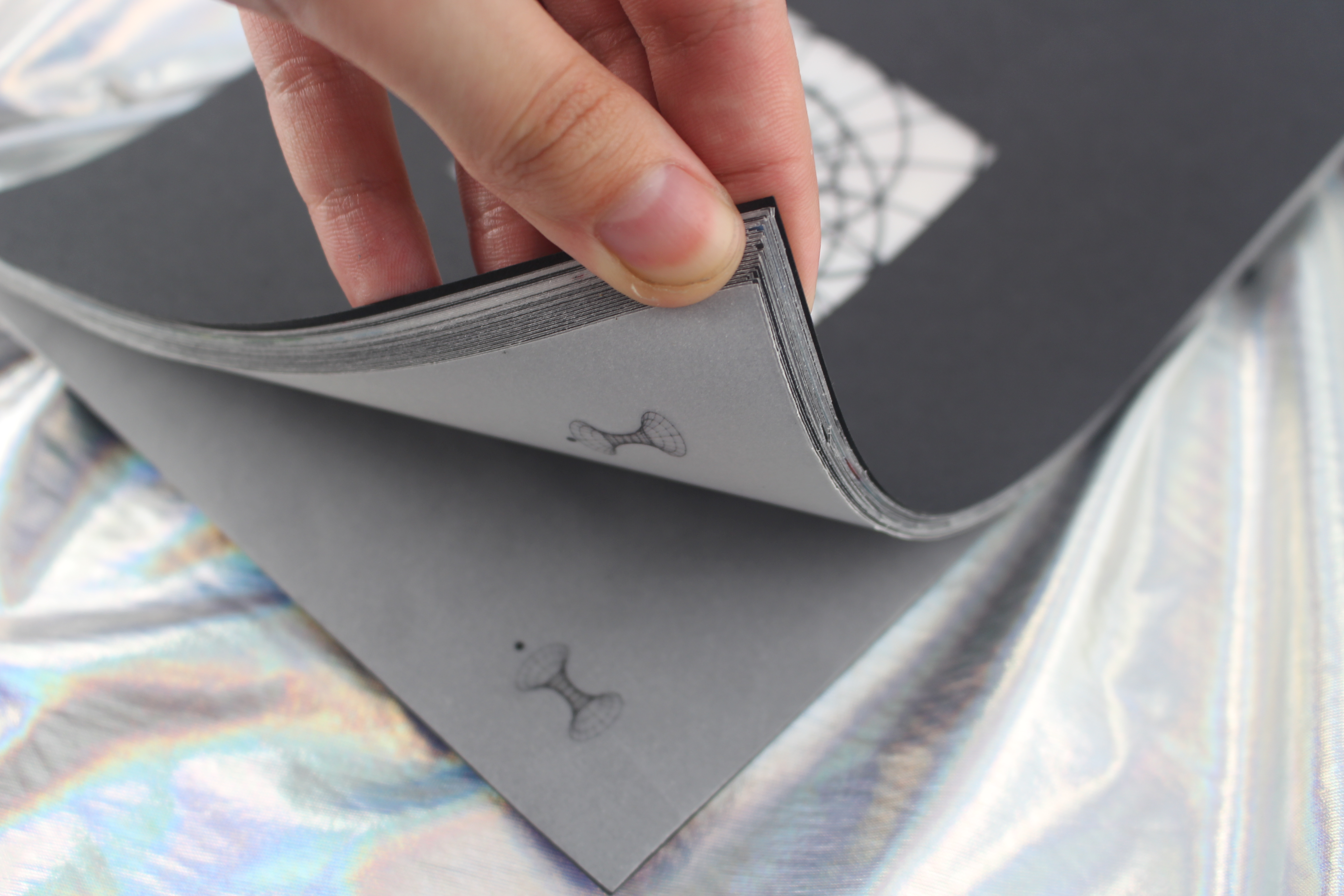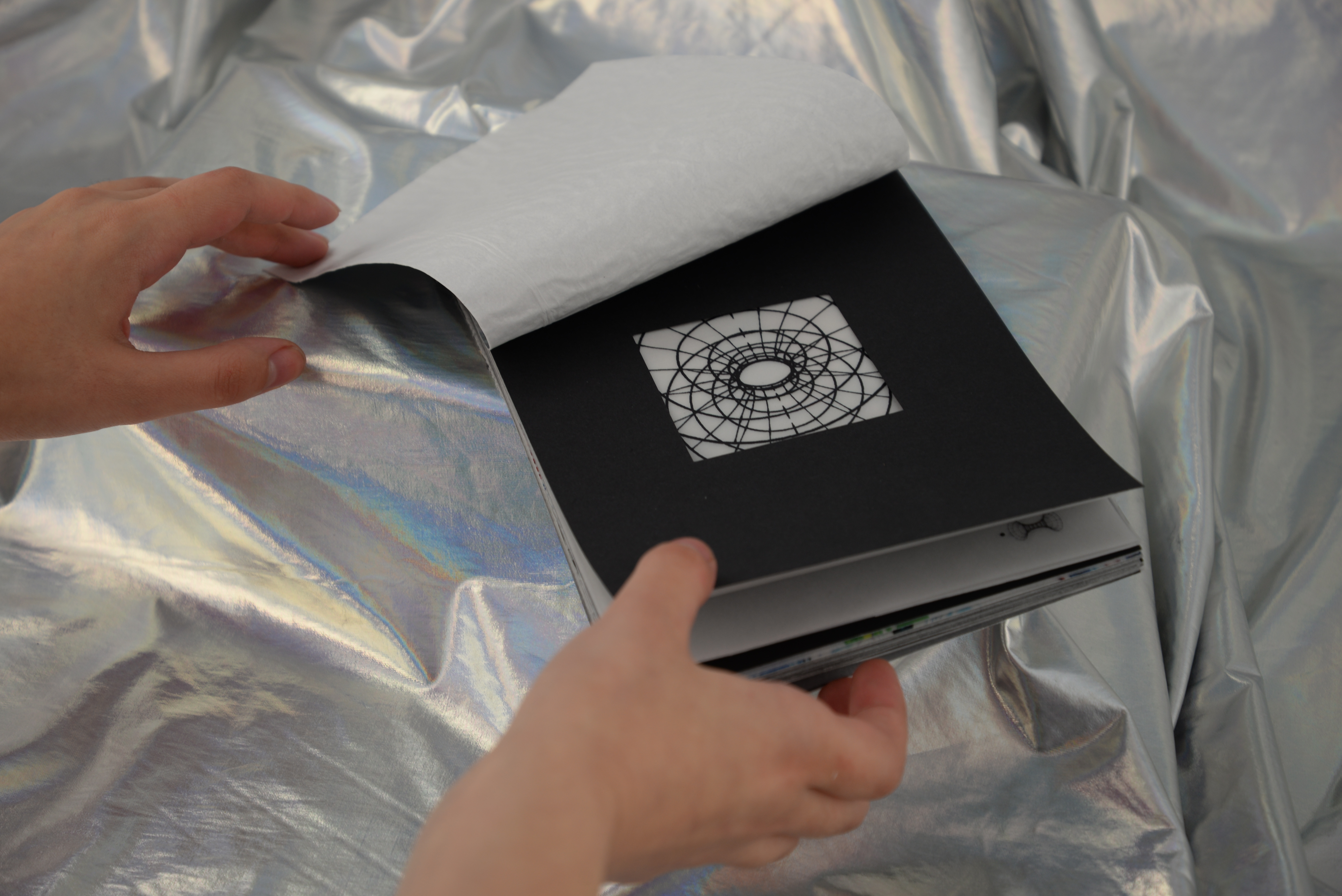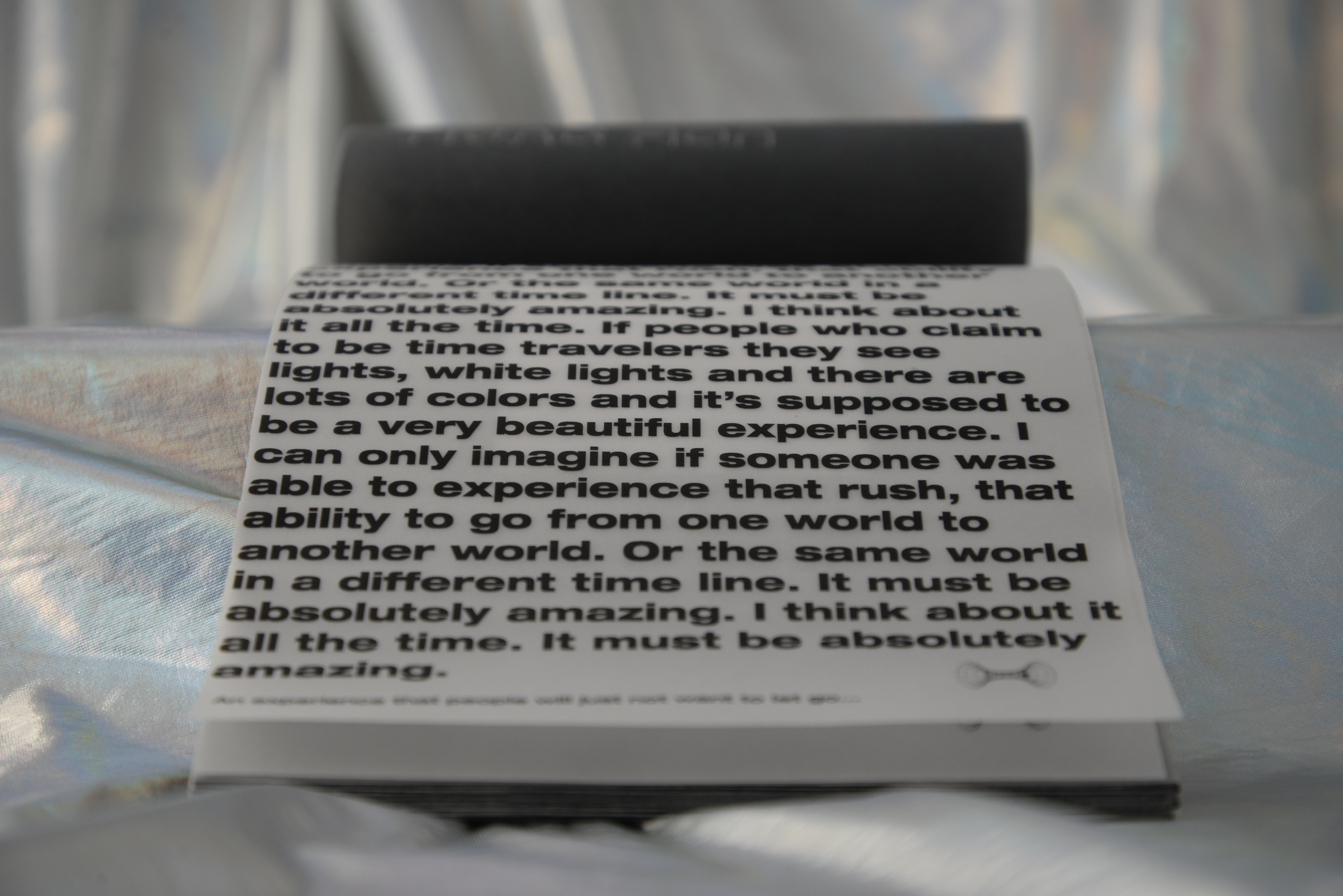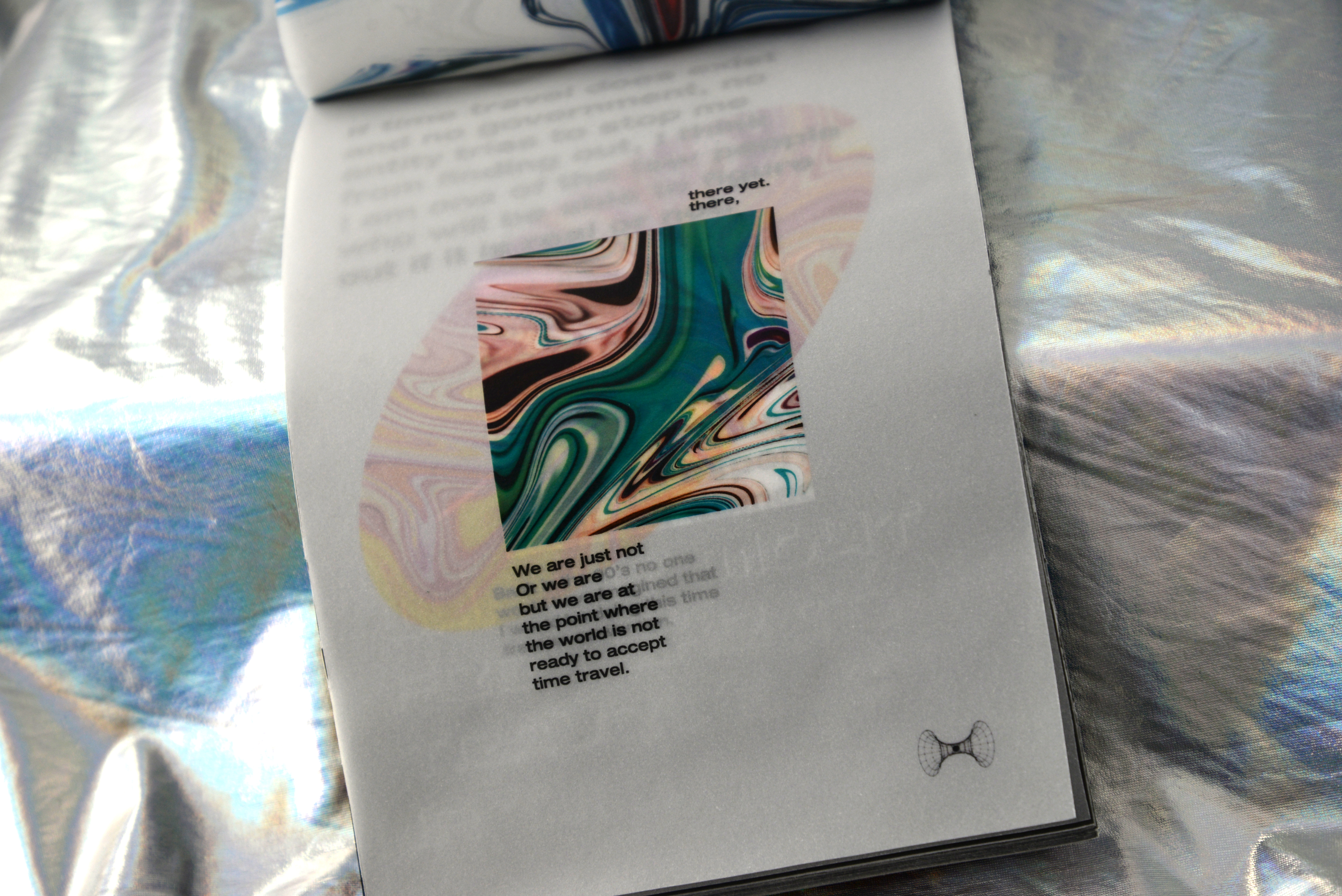 The concept of “time travel“ is transmitted through an illustrated model of a wormhole, using translucent paper, presenting each page as a different experience of reality when put in front of a light source.